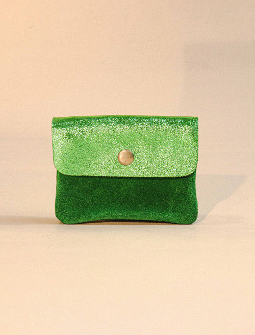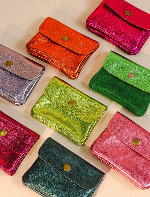Carteira para cartões com duas divisões. Fecho com mola dourada.