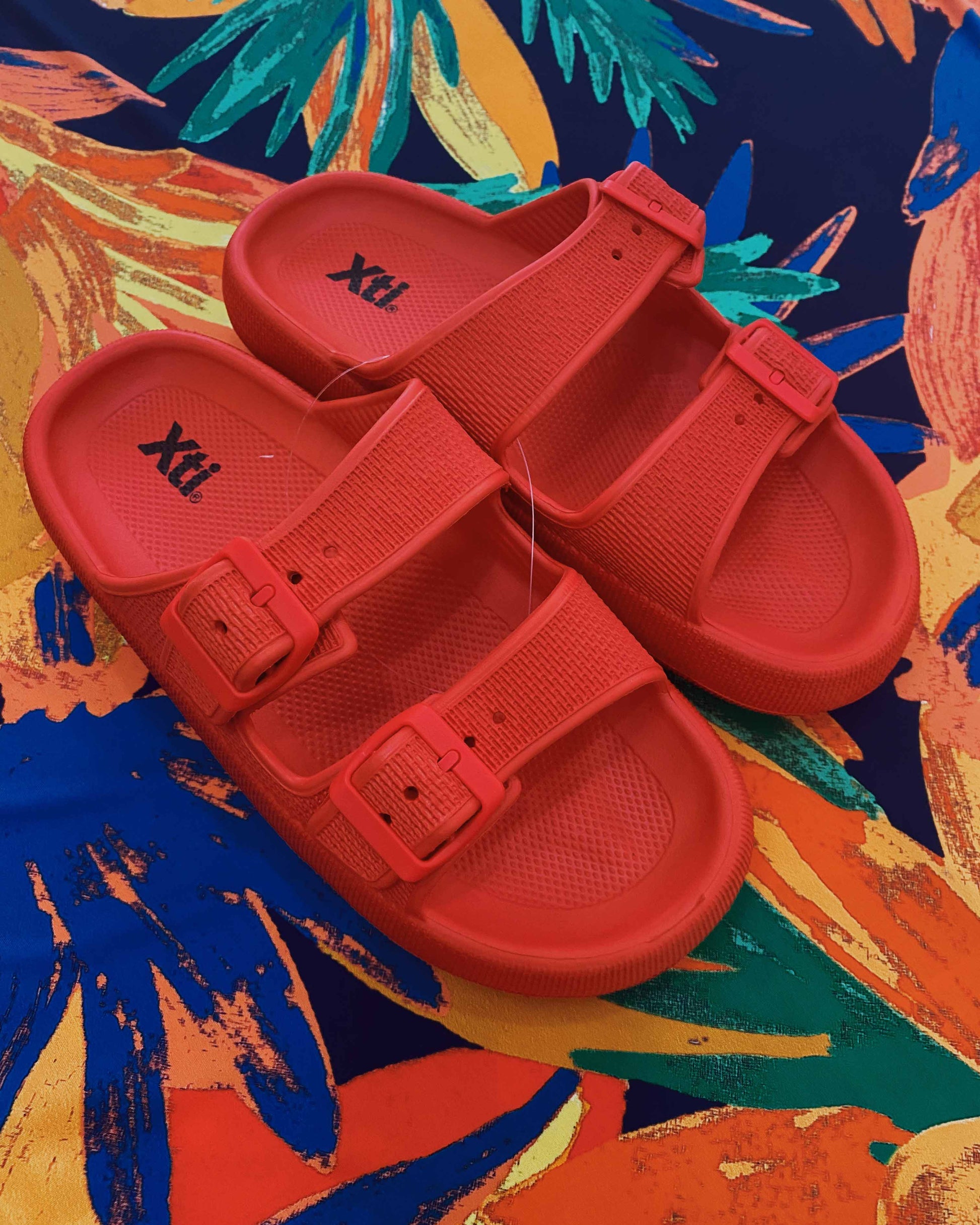 Chinelas texturadas com tiras ajustáveis. Plataforma de 4cm.